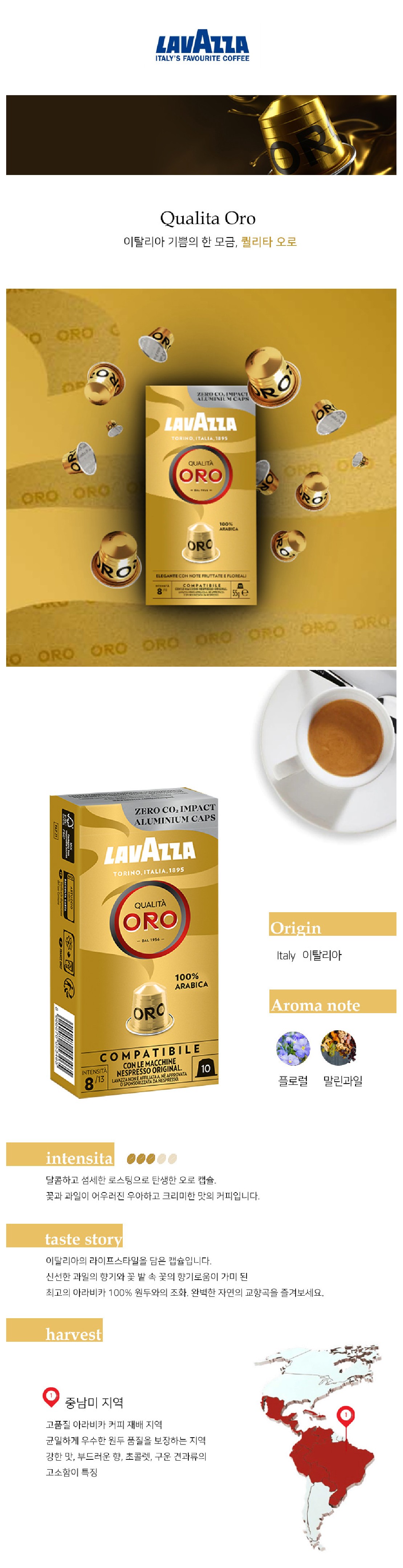 이탈리아 라바짜 퀄리타 오로 10개입 55g 네스프레소 LAVAZZA Ca phe pha may Oro