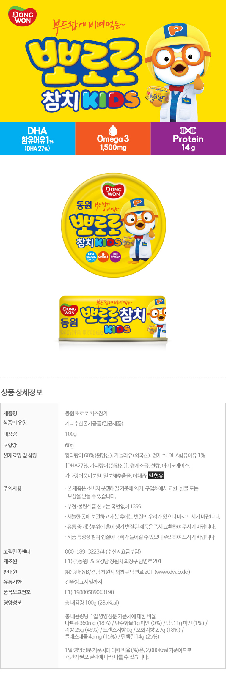 동원 뽀로로 참치 100g DONGWON Ca ngu Pororo