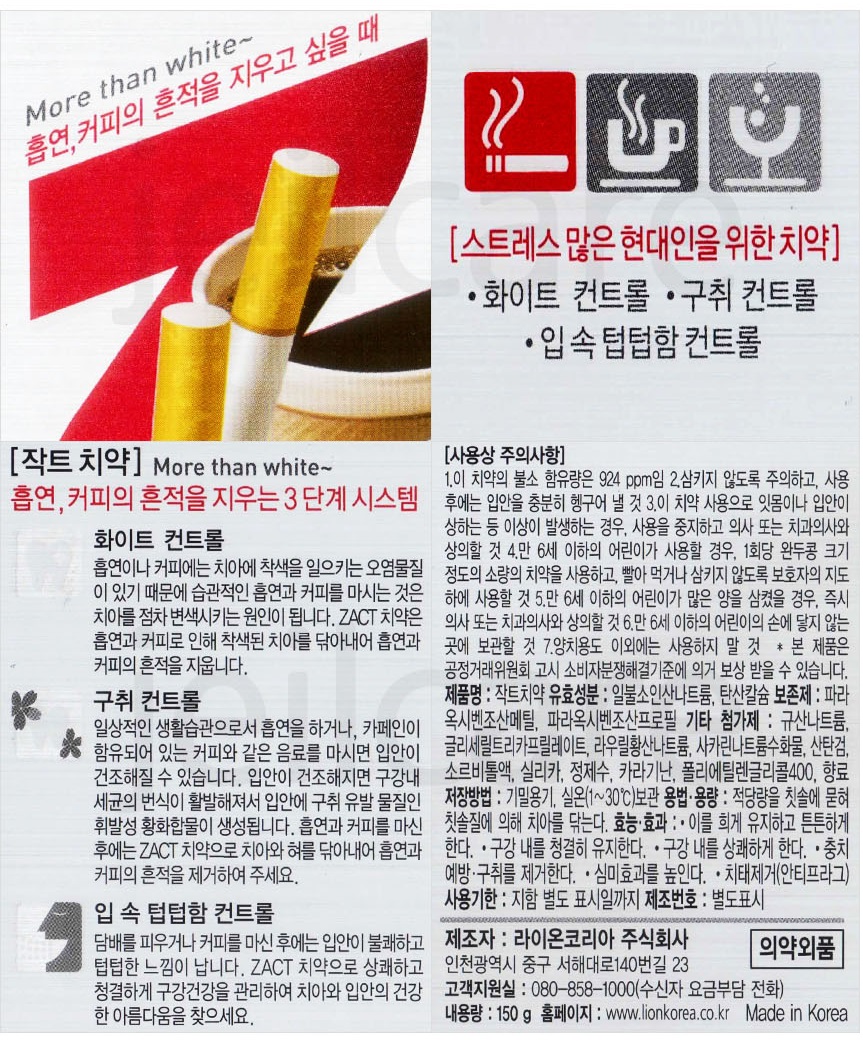 라이온 작트 플러스 미백 치약 150g ZACT Plus Kem danh rang lam trang rang, loai bo mui thuoc la
