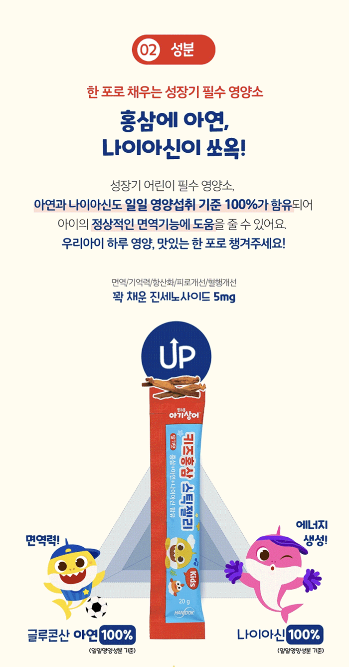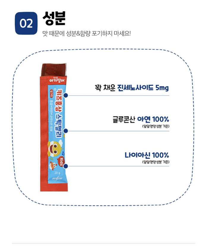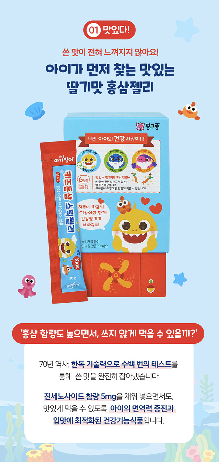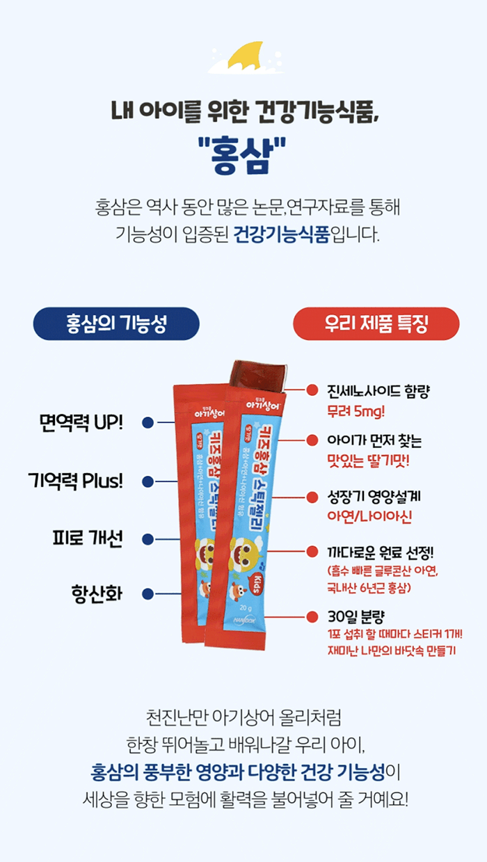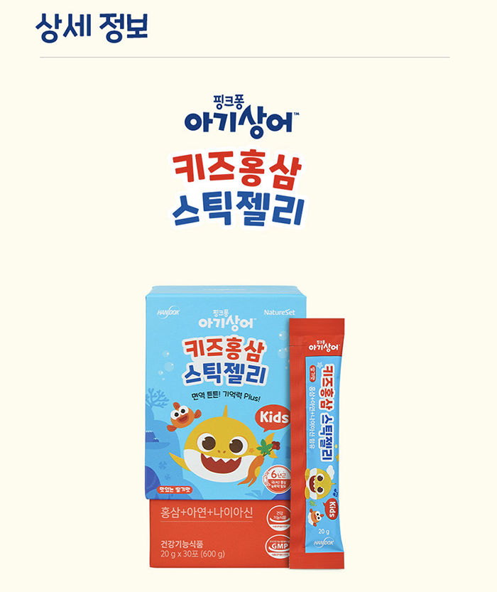 한독약품 아기상어 키즈 홍삼 스틱 젤리 20g Thach hong sam tre em