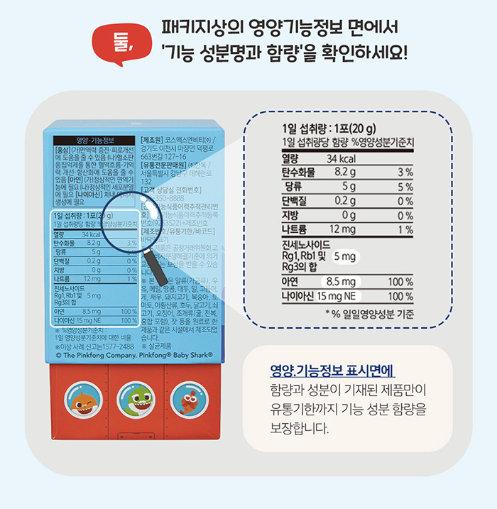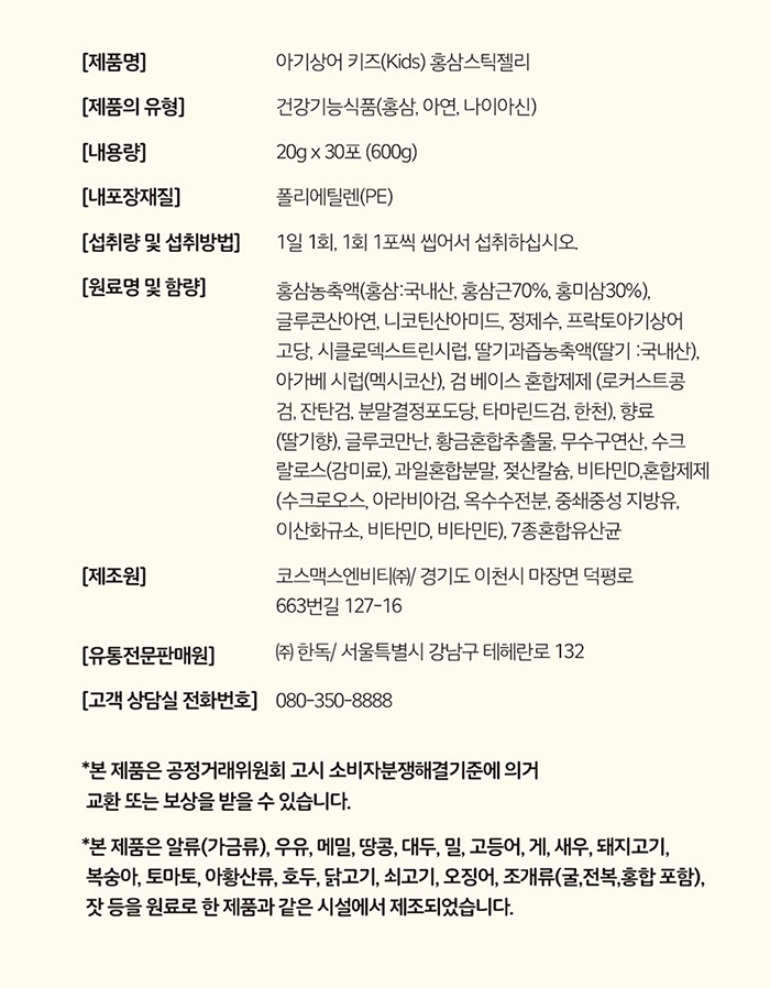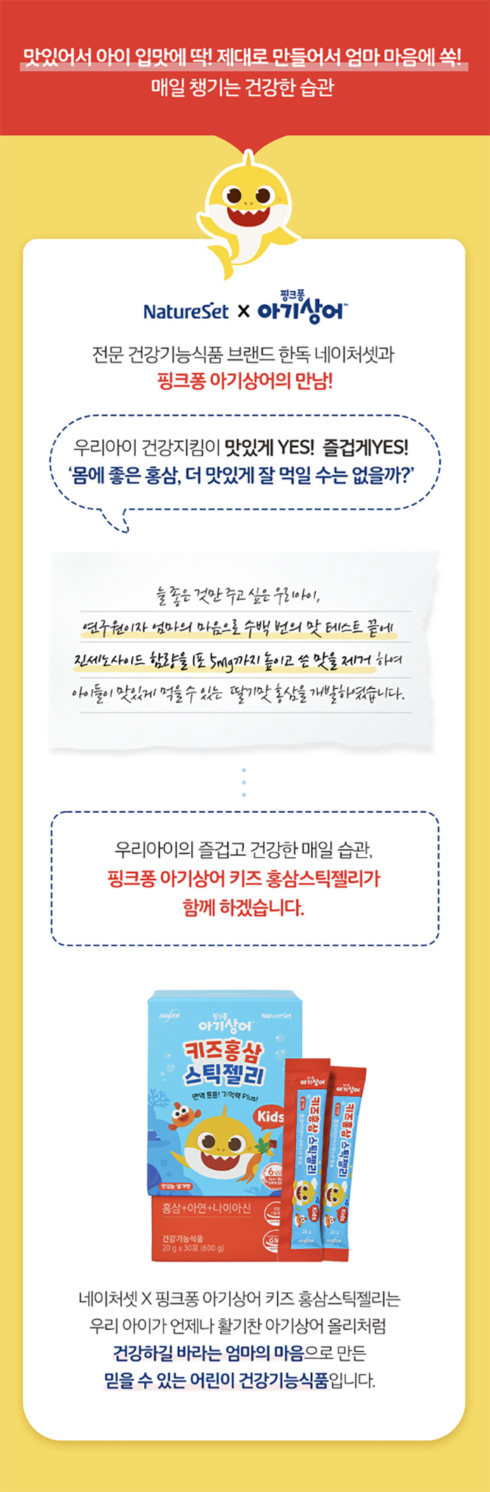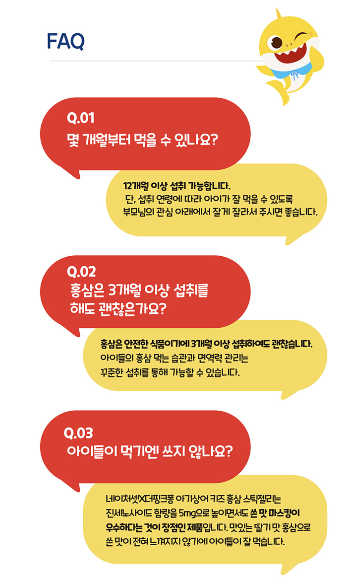 한독약품 아기상어 키즈 홍삼 스틱 젤리 20g Thach hong sam tre em