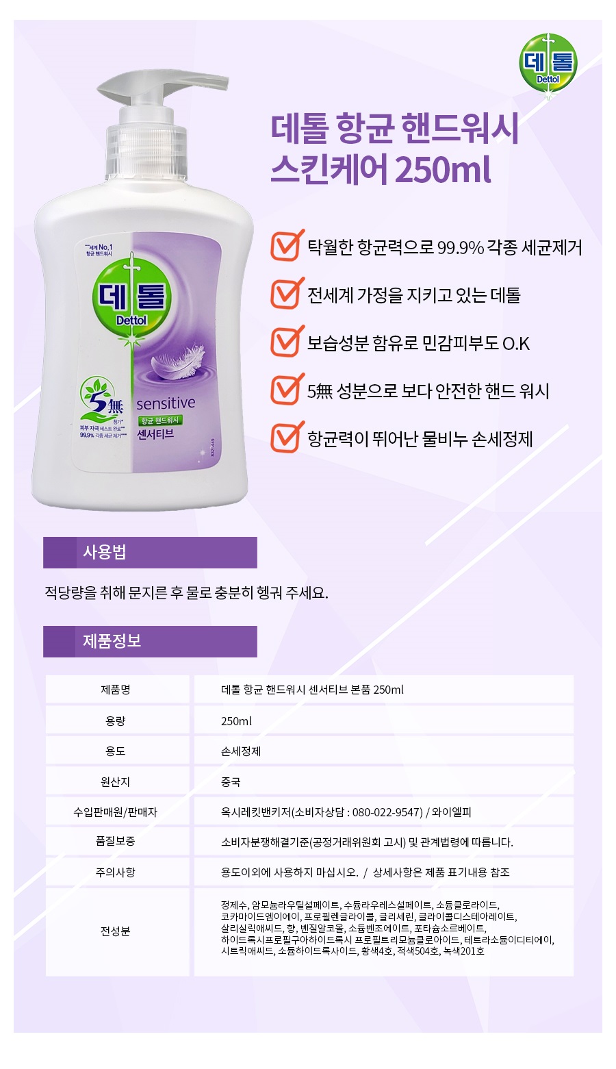 데톨 핸드워시 센서티브 250ML DETTHOL Dung dich rua tay cho da nhay cam