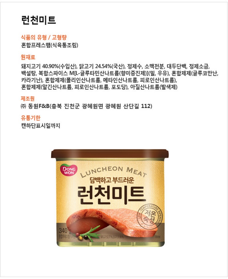 동원 런천미트 340g DONGWON Thit hop Lunch Meat