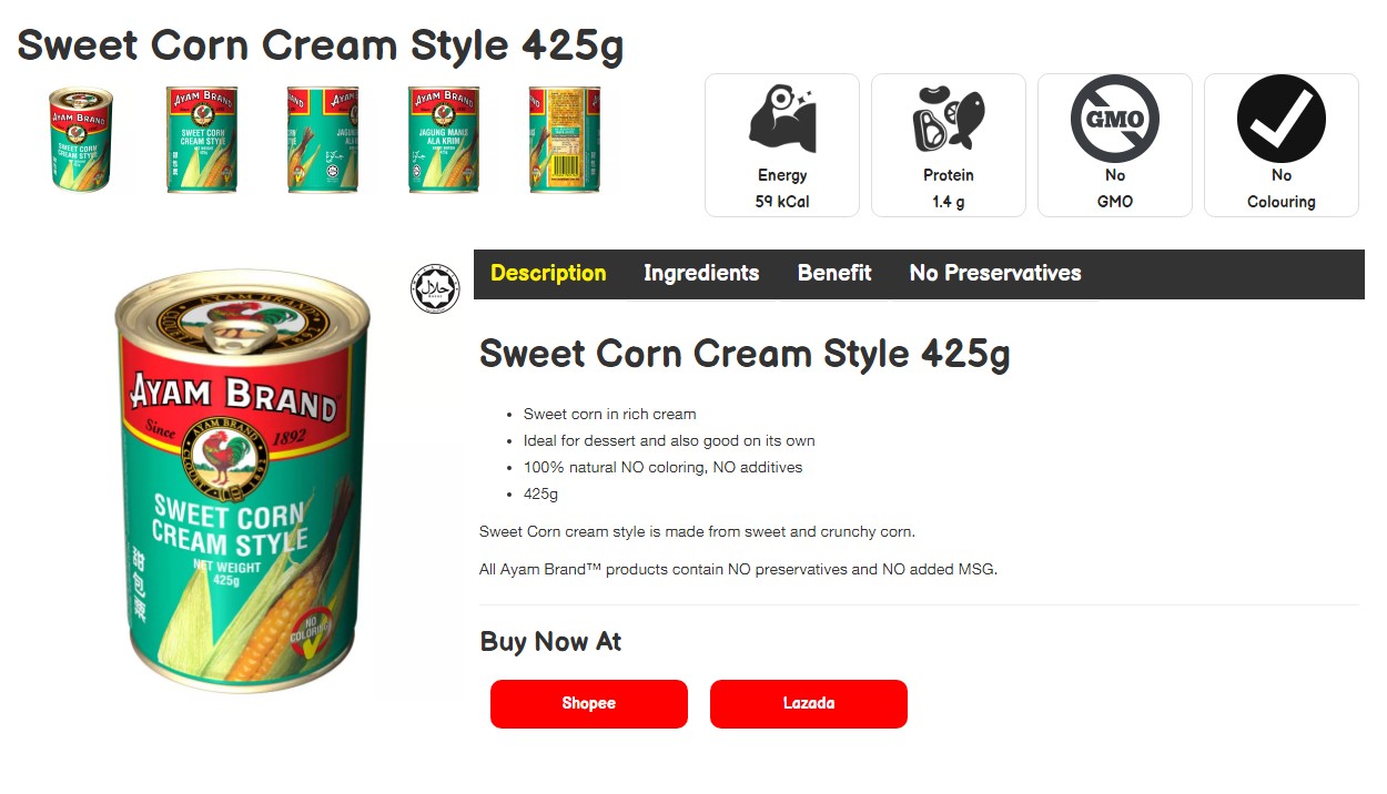말레이시아 아얌 브랜드 스위트콘 크림 스타일 425g AYAM BRAND Bap kem