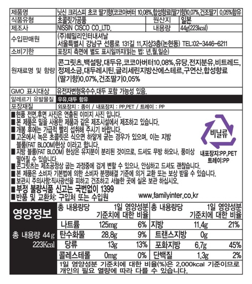 일본 닛신 크리스피 초코 딸기맛 44g Banh snack choco vi dau