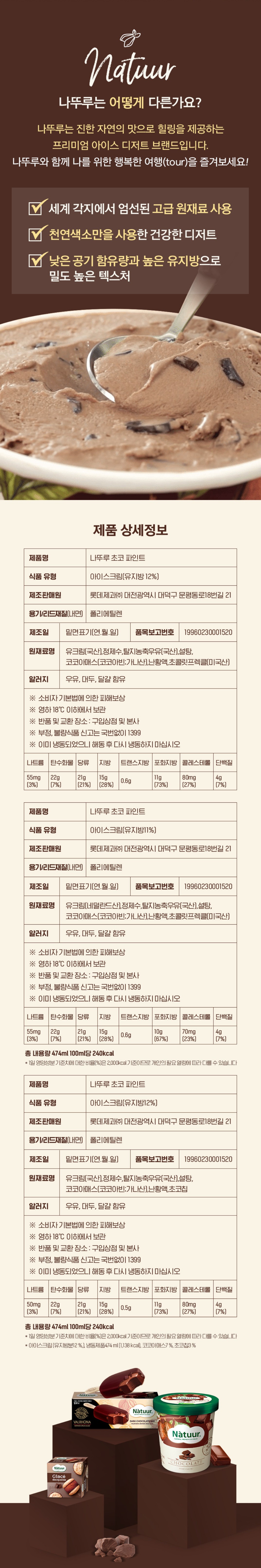 롯데 나뚜르 초코렛 아이스크림 파인트 474ml NATUUR Kem socola hop