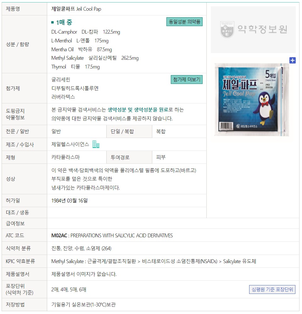 제일 파프 쿨 5매입 (14cm x 10cm) Cao dan lanh giam nhuc moi