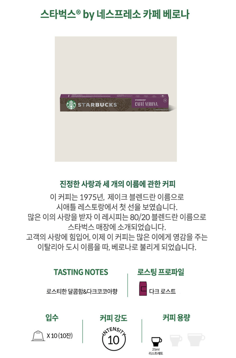 스위스 네스프레소 스타벅스 카페 베로나 5.5g*10개입 NESTLE Nespresso Ca phe may starbucks caffe verona