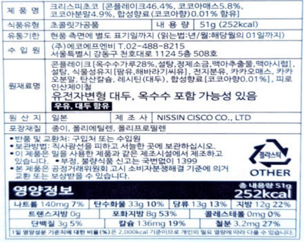 일본 닛신 크리스피 초코 51g Banh snack choco