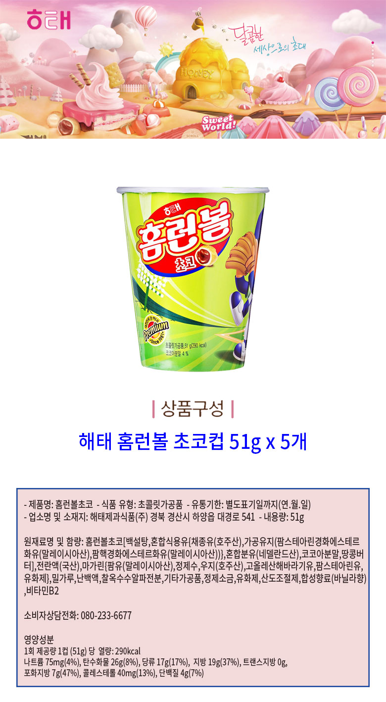 해태 홈런볼 초코컵 51g HAITAI Banh snacks nhan socola