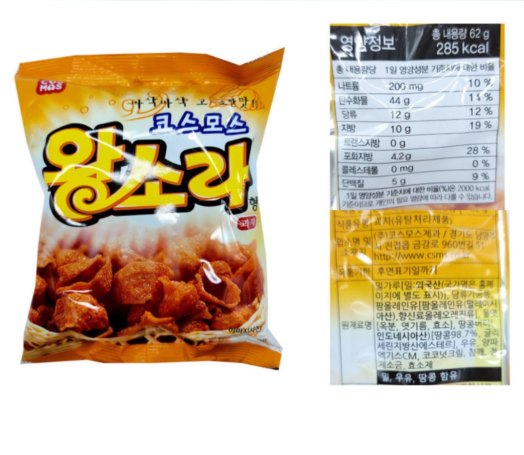 코스모스 왕소라 스낵 과자 62g Snack huong vi oc