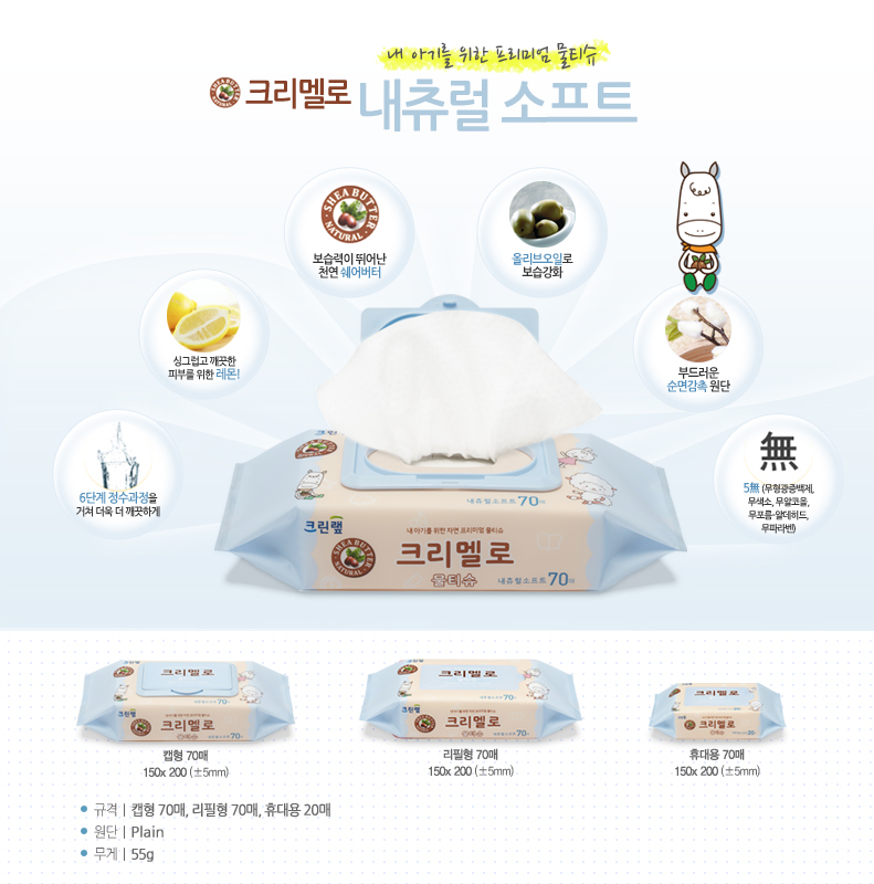 크린랲 크리멜로 소프트 물티슈 70매 Giay uot soft