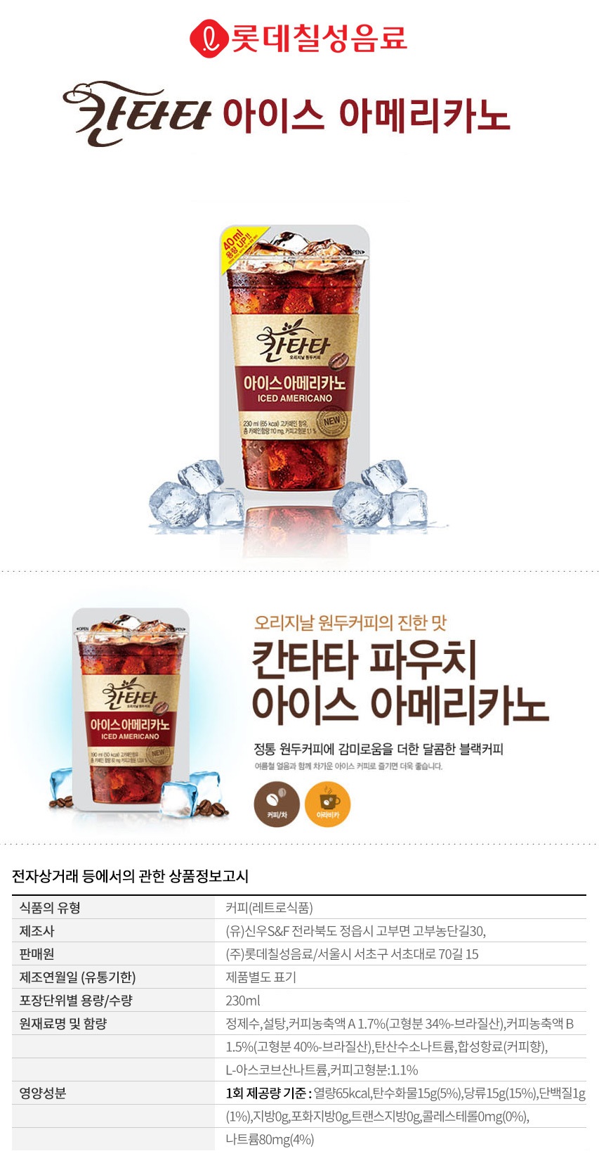 롯데칠성 칸타타 아이스 아메리카노 230ML LOTTE Ca phe da hoa tan Cantata Americano tui