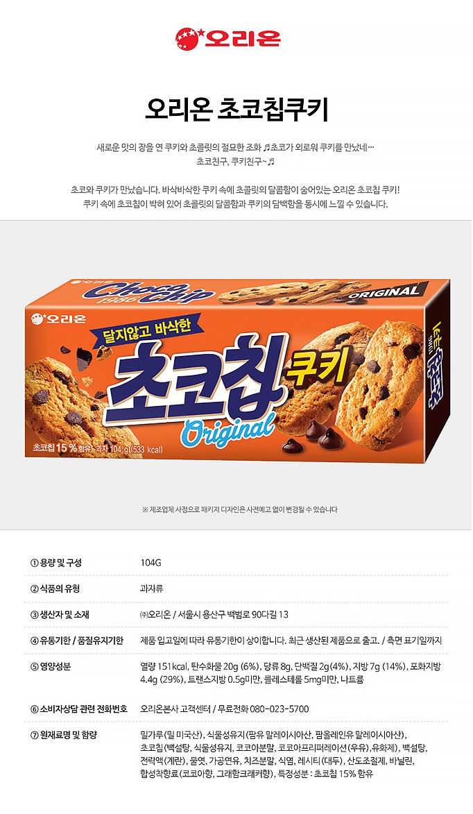 오리온 초코칩쿠키 104G ORION Banh chocochip