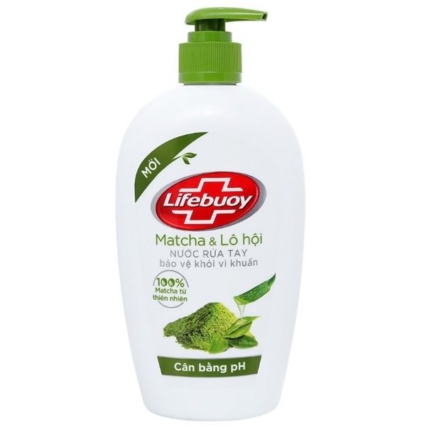 유니레버 라이브 포이 그린 티 & 알로에 500G LIFEBUOY Nuoc rua tay Matcha & Nha Đam