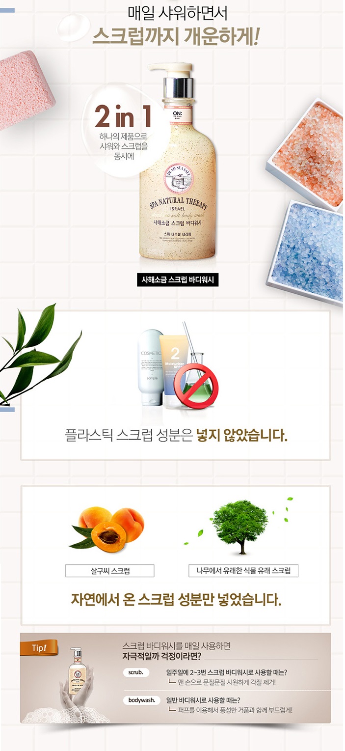 LG생활건강 온더바디 사해소금 스크럽 바디클렌저 LGVINA On The Body Sua tam Dead Sea Salt