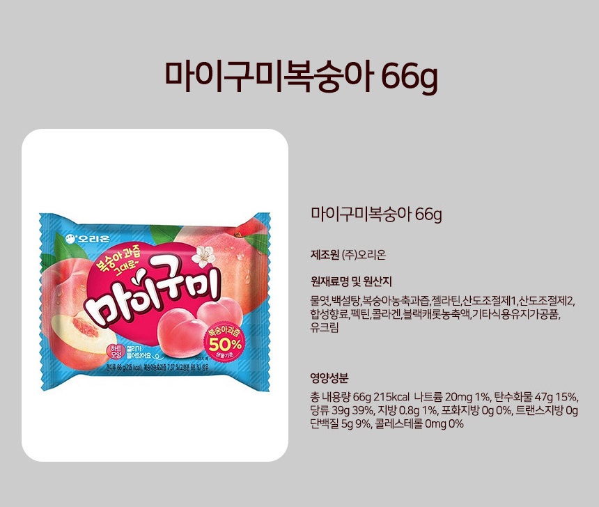 오리온 마이구미 복숭아 66g ORION Keo deo vi dao