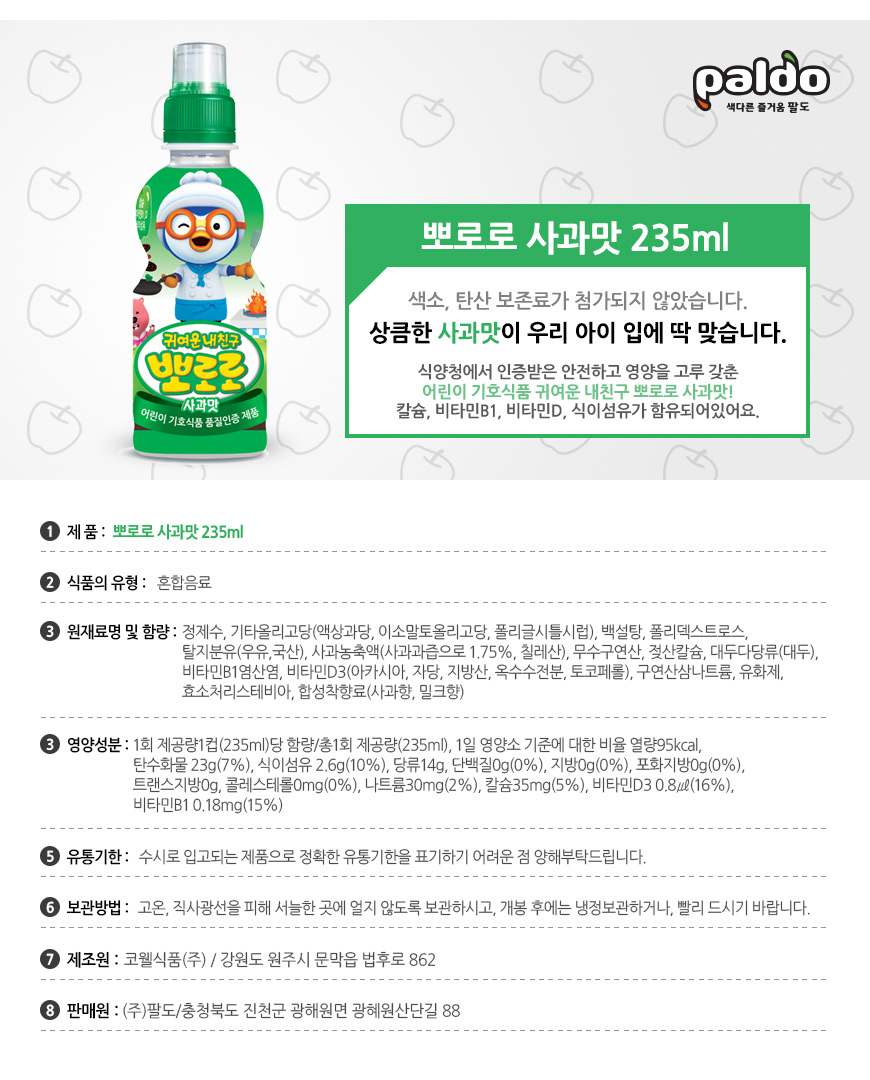 팔도 뽀로로 사과 235ml PALDO Nuoc uong Pororo vi tao